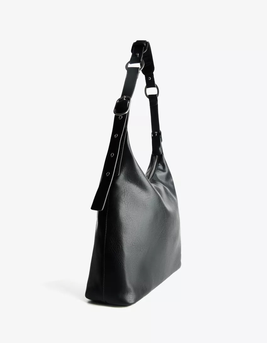 The standout feature is the wide, belt-style shoulder strap, which includes silver-tone grommets and a sturdy buckle, allowing you to customize the drop length to your preference. Whether styled over an oversized coat or a casual denim look, this bag offers ample room for your laptop, water bottle, and daily essentials, making it your new go-to for work, study, or travel.